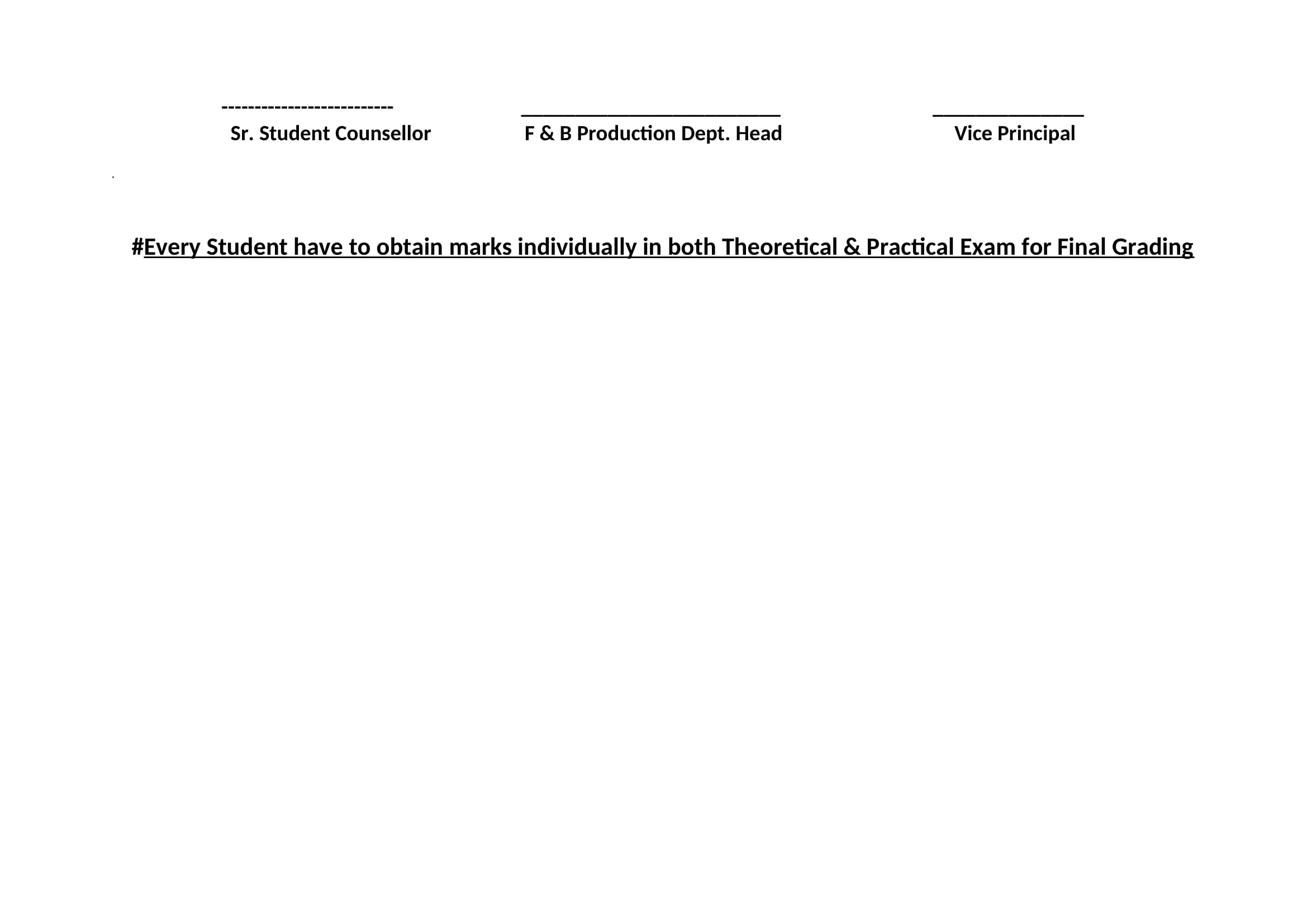 F & B Production 65th to 69th Batch 3rd Semester Final Result